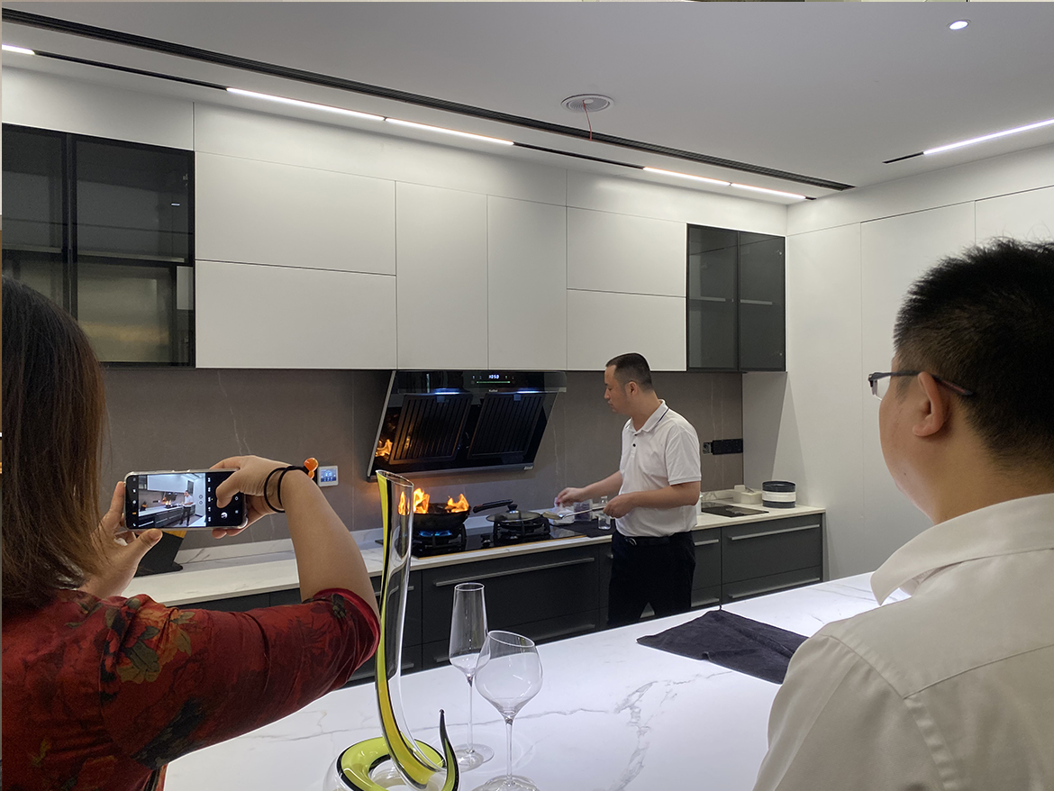 各位學員嘉賓們對各類高品質的產品及德系工藝接連點頭稱道,特別是在煙機演示過程中,看到經過油煙熏烤、猛火灼燒的煙機,依然能夠保持潔凈如新的狀態時,更是驚訝不已。好的產品是打造高品質廚房生活空間的基礎,庫靈圖希望通過開源化、模塊化的設計理念,為更多精英用戶創造出理想的浪漫生活。